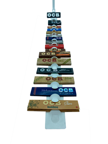 Este exhibidor está hecho para mostrar un nuevo producto de la familia OCB. Es ideal para exhibir el librito + filtros, mostrando tanto las cualidades del papel como su novedoso diseño minimalista.